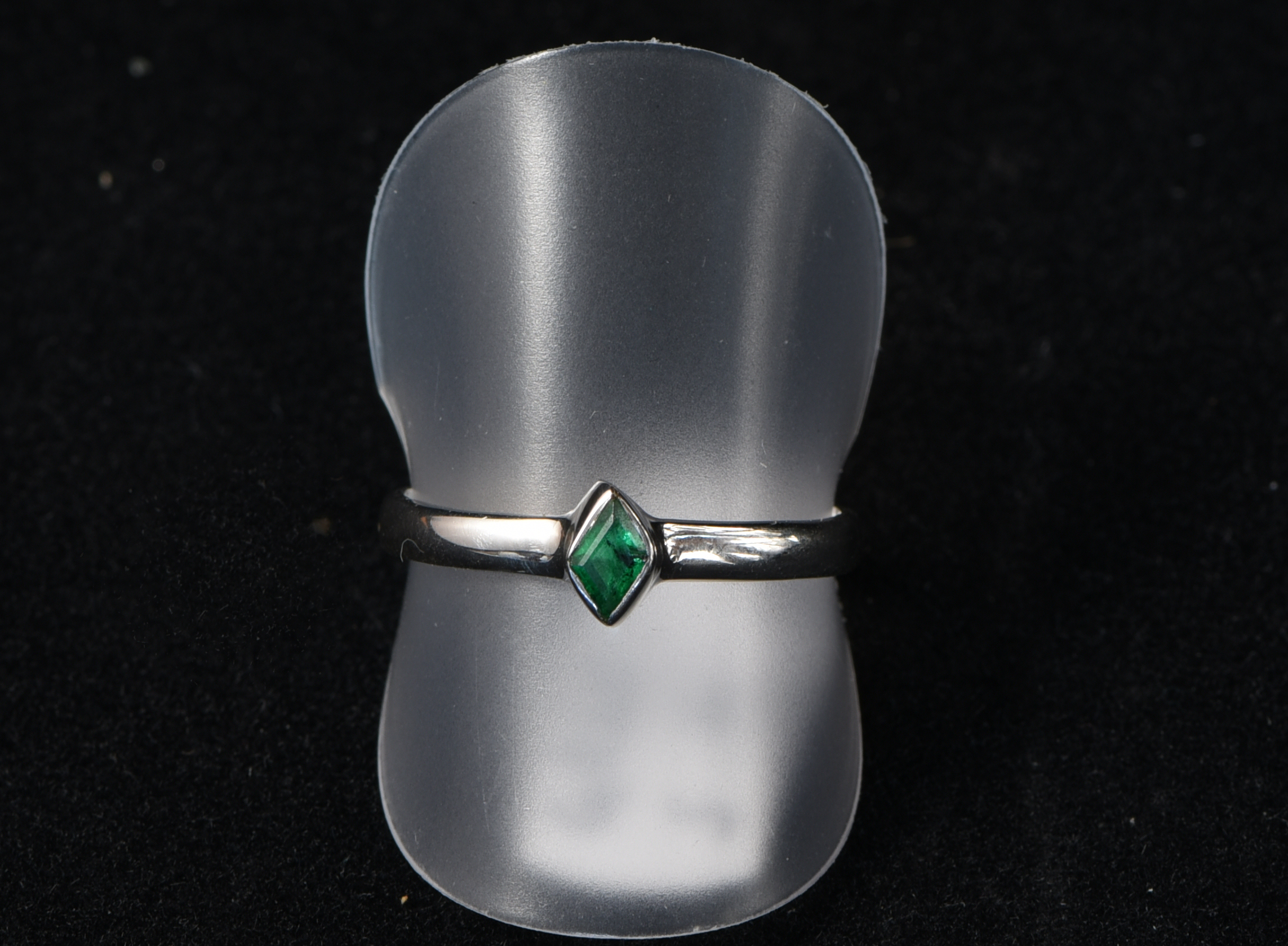 A 5,5 mm x 3,5 mm large, faceted emerald was set into a silver ring. The emerald was found at the emerald-mine in "Habach"-valley (Bramberg, Salzburg, Österreich).
