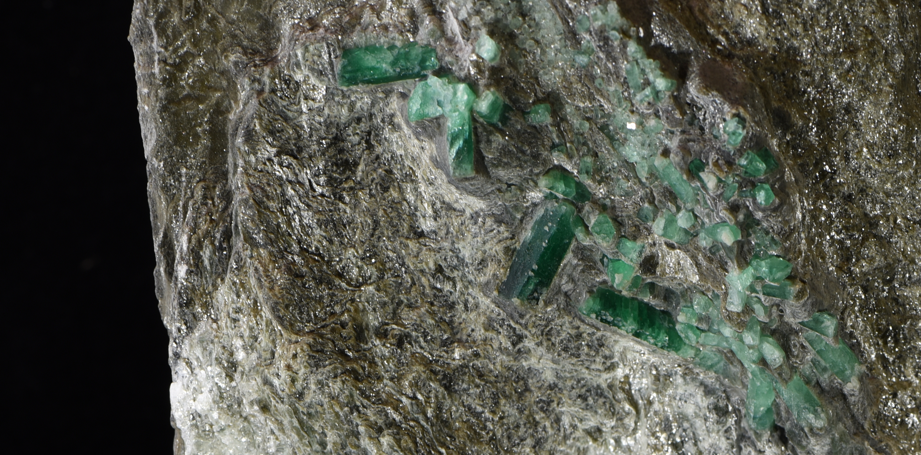On this wonderful piece you can see more than 50 emeralds with an amazing quality. Some of the emeralds are even longer than 1 cm. The emerald was found in the emerald mine in the Habach Valley (Bramberg, Salzburg, Austria)