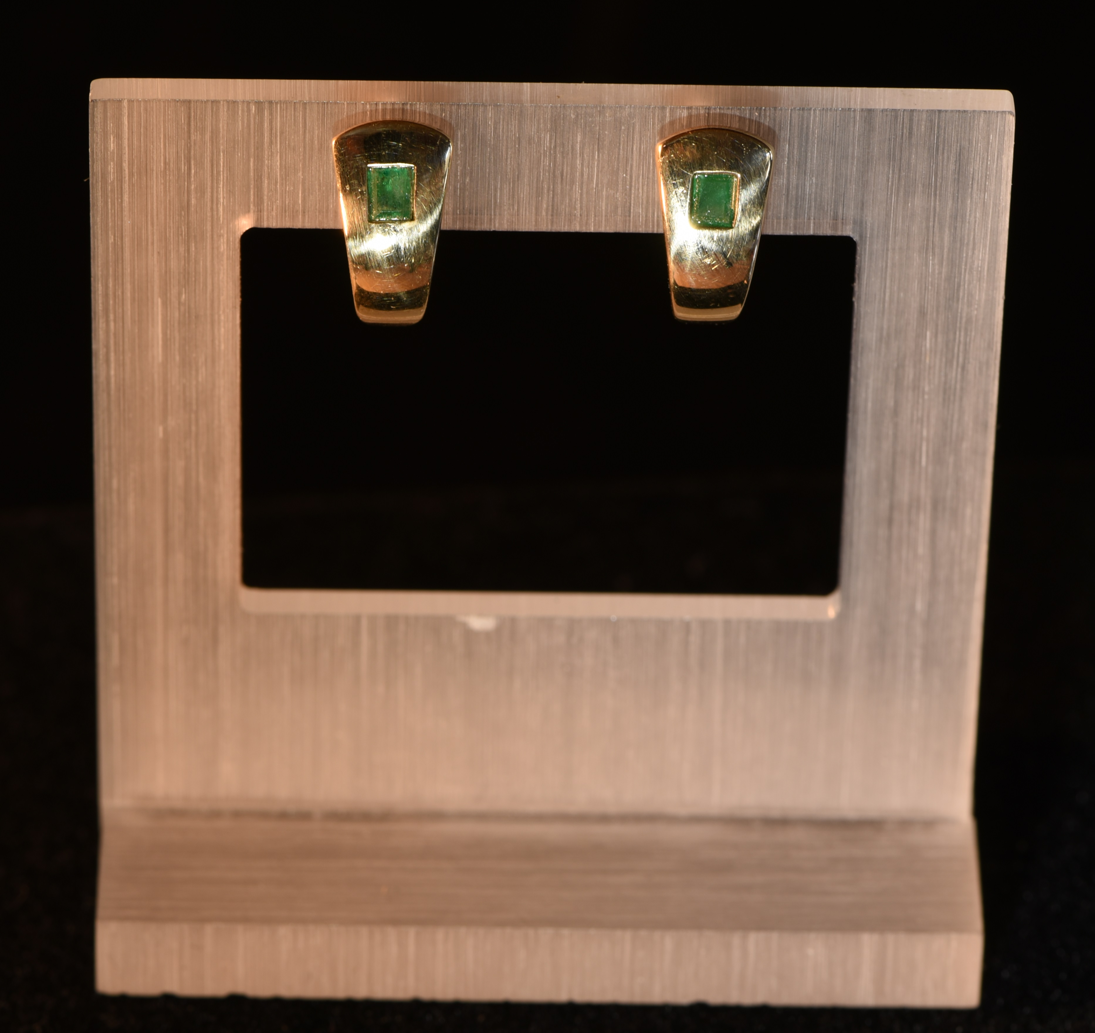 2 facettierte Smaragde mit Top-Qualität und einer Größe von jeweils 3,5 mm x 3 mm wurden in eine Gold-Creolenpaar eingearbeitet. Die Smaragde haben eine sehr gute Qualität und eine schöne, dunkelgrüne Farbe. Die Steine wurden im Smaragdbergbau im Habachtal (Bramberg, Salzburg, Österreich) gefunden.