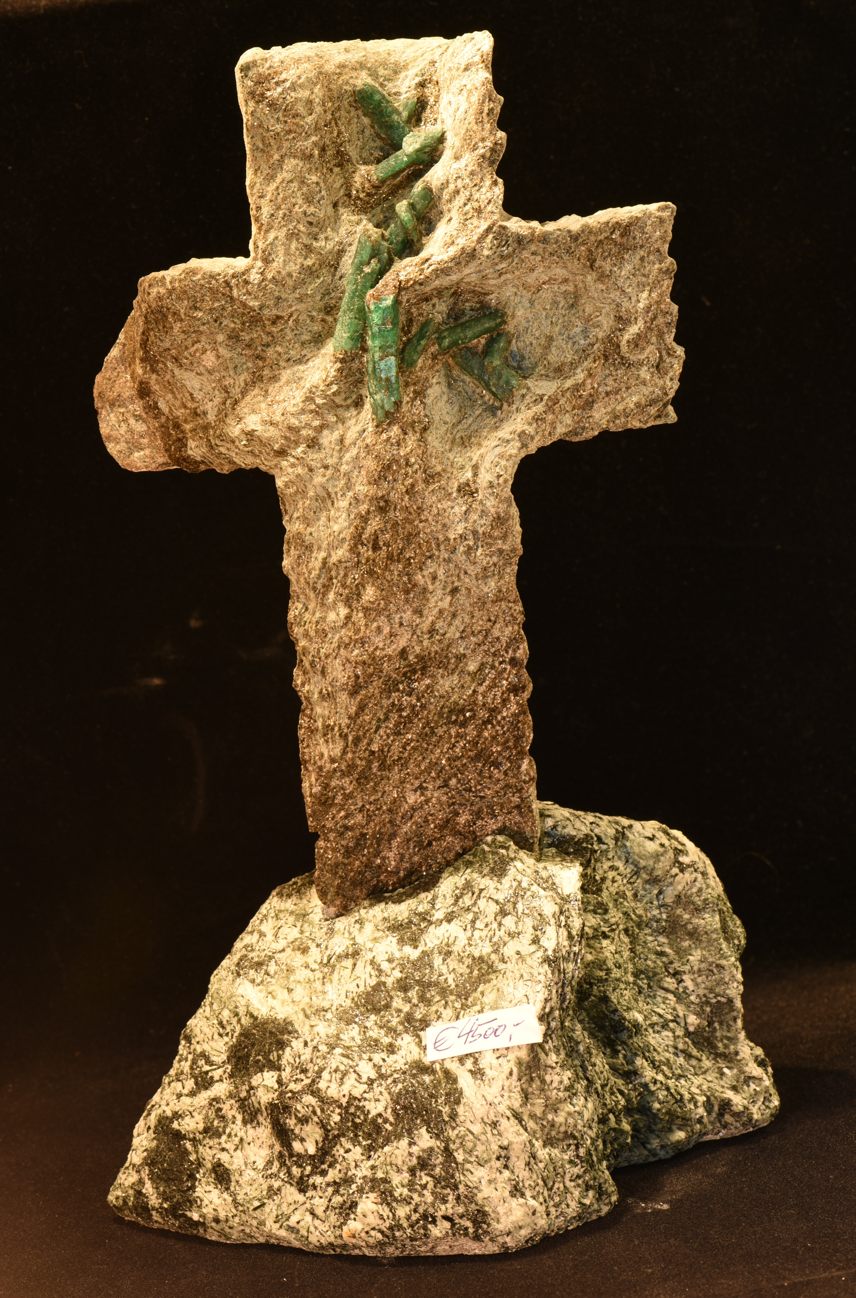 Product information "Smaragdkreuz auf Aktinolithsockel"