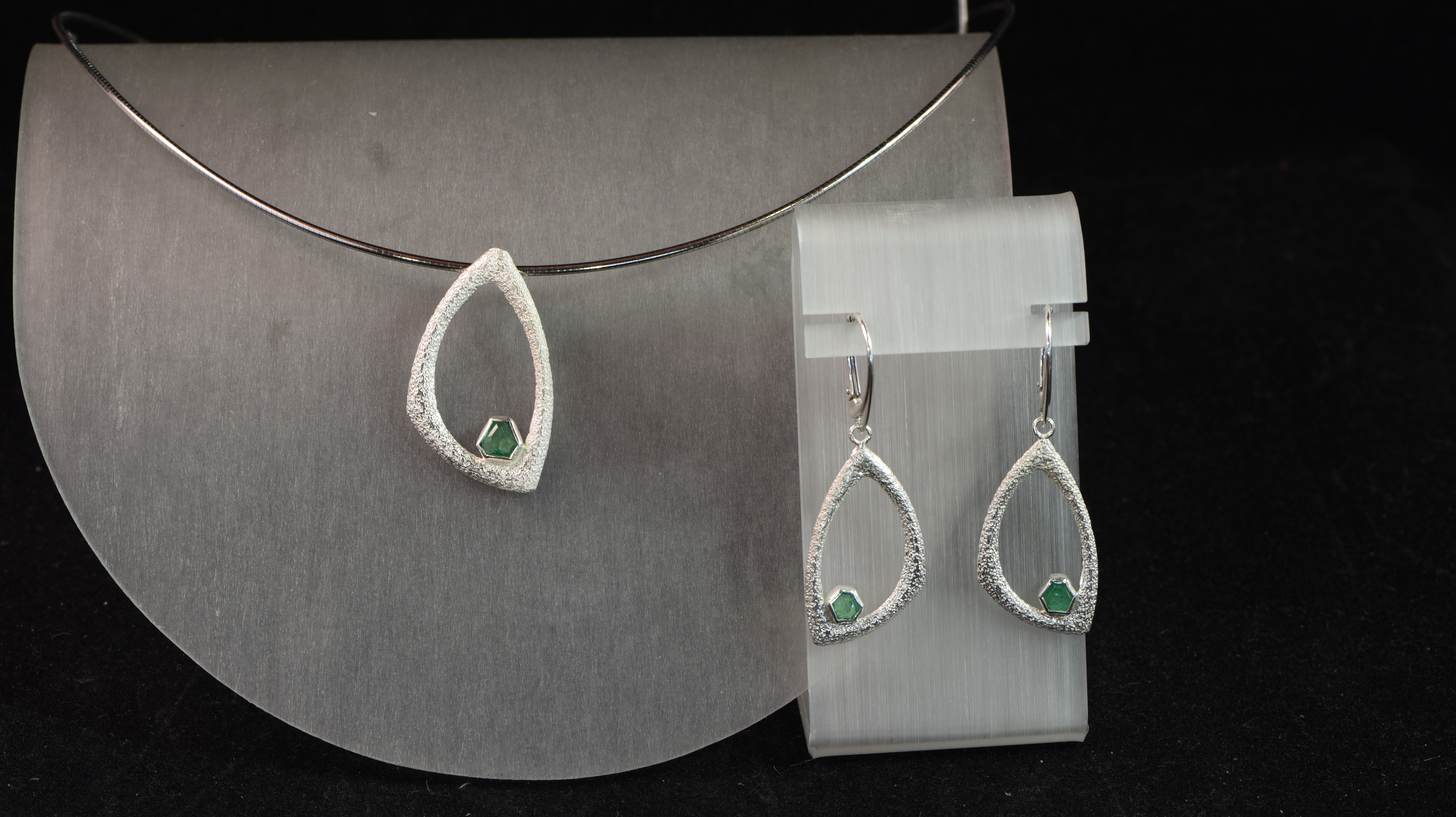 Zwei 4 mm x 4,5 mm große, facettierte Habachtal-Smaragde wurden in Silber gefasst. Die Steine haben eine Top-Qualität und eine Transparenz, die für Habachtal-Smaragde kaum übertreffbar ist. Die Steine wurden im Smaragdbergbau im Habachtal (Bramberg, Salzburg, Österreich) gefunden.