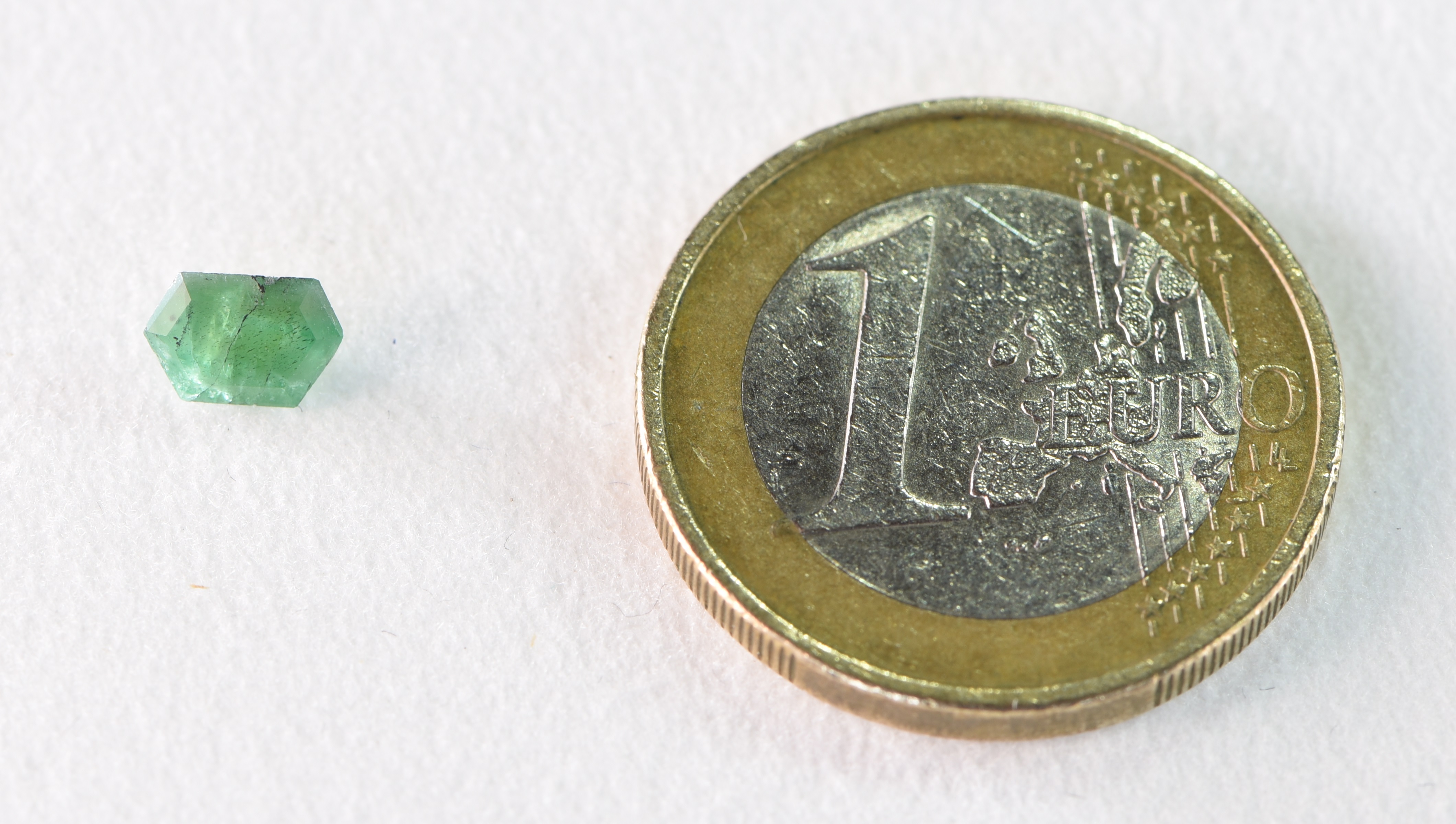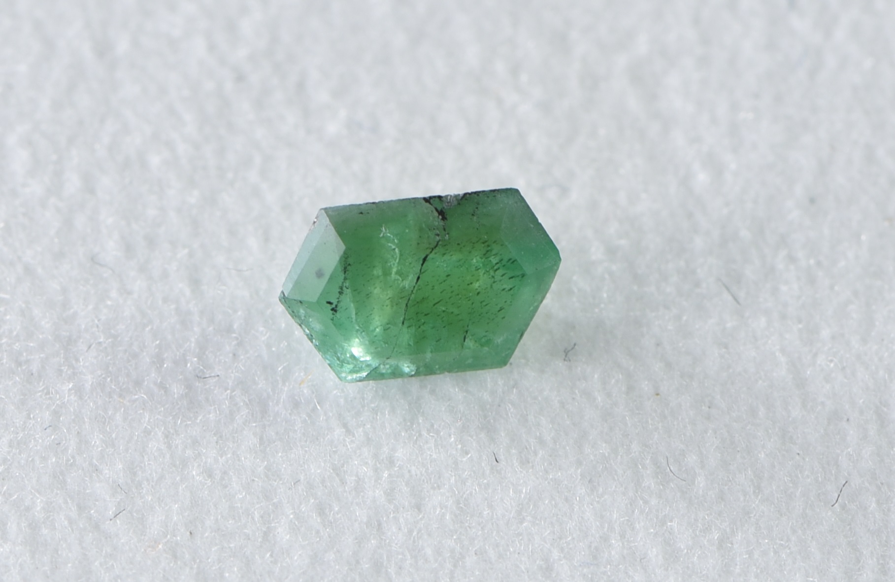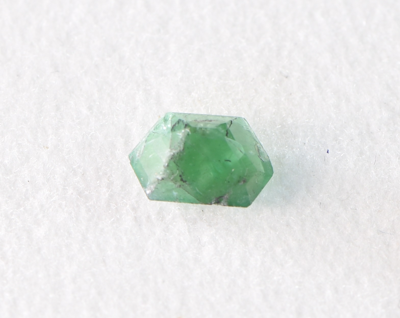 Dieser Smaragd ist sechseckig geschliffen und hat eine gute Farbe. Durch den Stein ziehen sich einige Biotit-Einschlüsse. Der Smaragd wurde im Smaragdbergwerk im Habachtal (Bramberg, Salzburg, Österreich) gefunden.