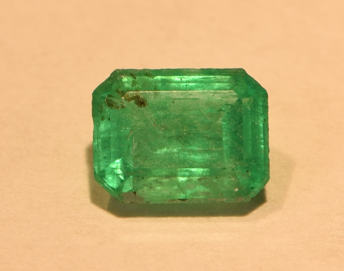 Dieser Smaragd ist im typischen Smaragdschliff geschliffen und hat eine unglaubliche Transparenz und eine leuchtend grüne Farbe - die Transparenz und das Leuchten dieses Steines sind eine wahre Seltenheit für das Habachtal. Minimale Biotit-Einschlüsse sind zu sehen. Der Stein wurde im Smaragdbergwerk im Habachtal (Bramberg, Salzburg, Österreich) gefunden.